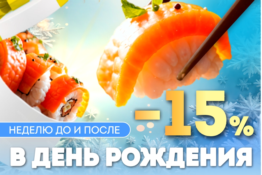 ****В период за 7 дней до и после дня вашего рождения скидка по карте составит 15%. Скидка не действует на акционные товары. Применить списание накопленных бонусов к данной покупке не возможно. Бонусы за такую покупку не будут начислены.